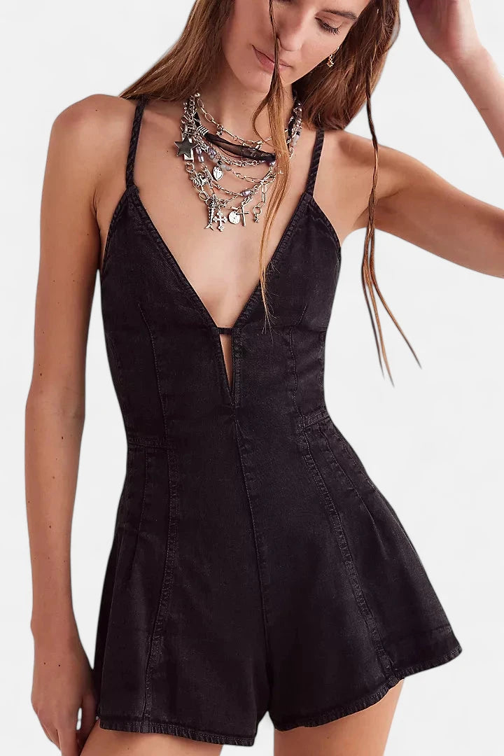 Ce combishort en jean noir séduit par son décolleté plongeant et sa coupe moderne. Conçu pour mettre en valeur la silhouette, il associe sensualité et confort dans une pièce unique. Sa ligne épurée et sa teinte sombre en font un incontournable pour un look urbain et affirmé. Les coutures verticales apparentes allongent visuellement la silhouette, tandis que la matière légèrement extensible assure un ajustement flatteur et agréable.