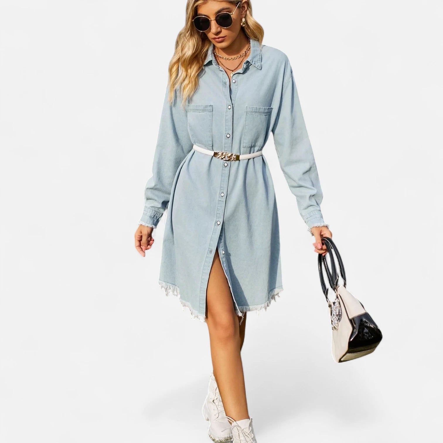 Robe chemise en jean mi-longue - élégance décontractée au quotidien