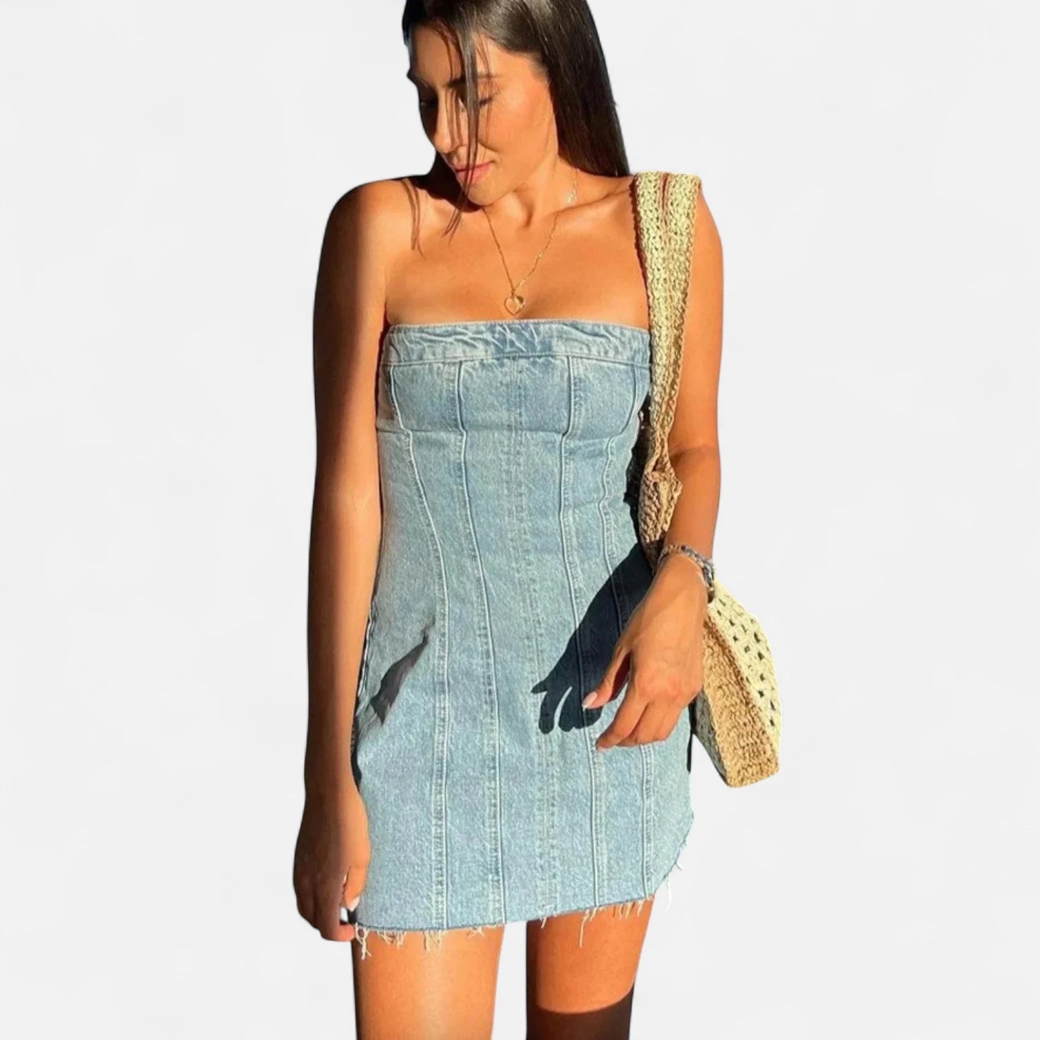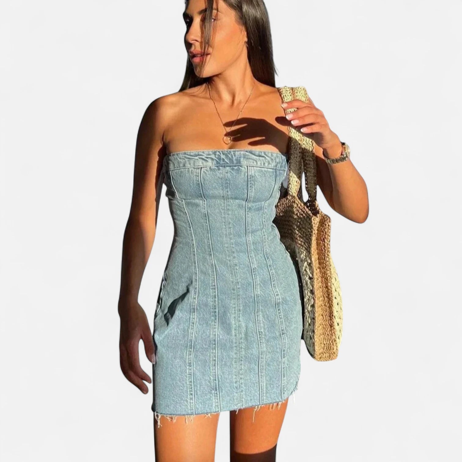 Robe en jean bustier courte sexy + l’énergie d’une pièce affirmée