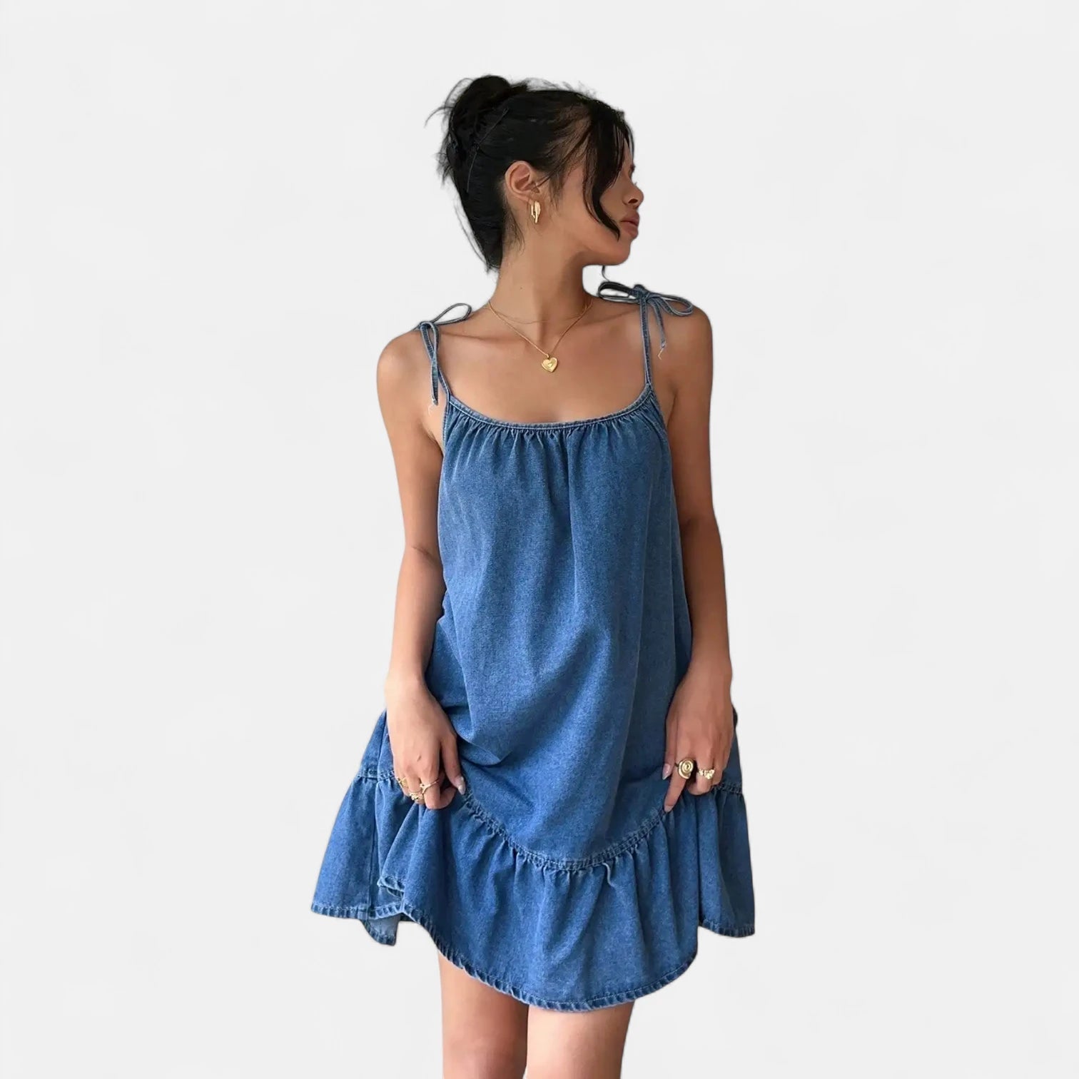 Parfaite pour les journées estivales, cette robe en jean oversize combine simplicité et modernité. Son style ample et fluide met en valeur toutes les silhouettes, tandis que ses fines bretelles réglables à nouer ajoutent une touche féminine. Sa base volantée apporte un joli mouvement au tombé structuré. Confectionnée dans un denim léger au toucher doux, elle est idéale avec des sandales ou des baskets pour un look décontracté.