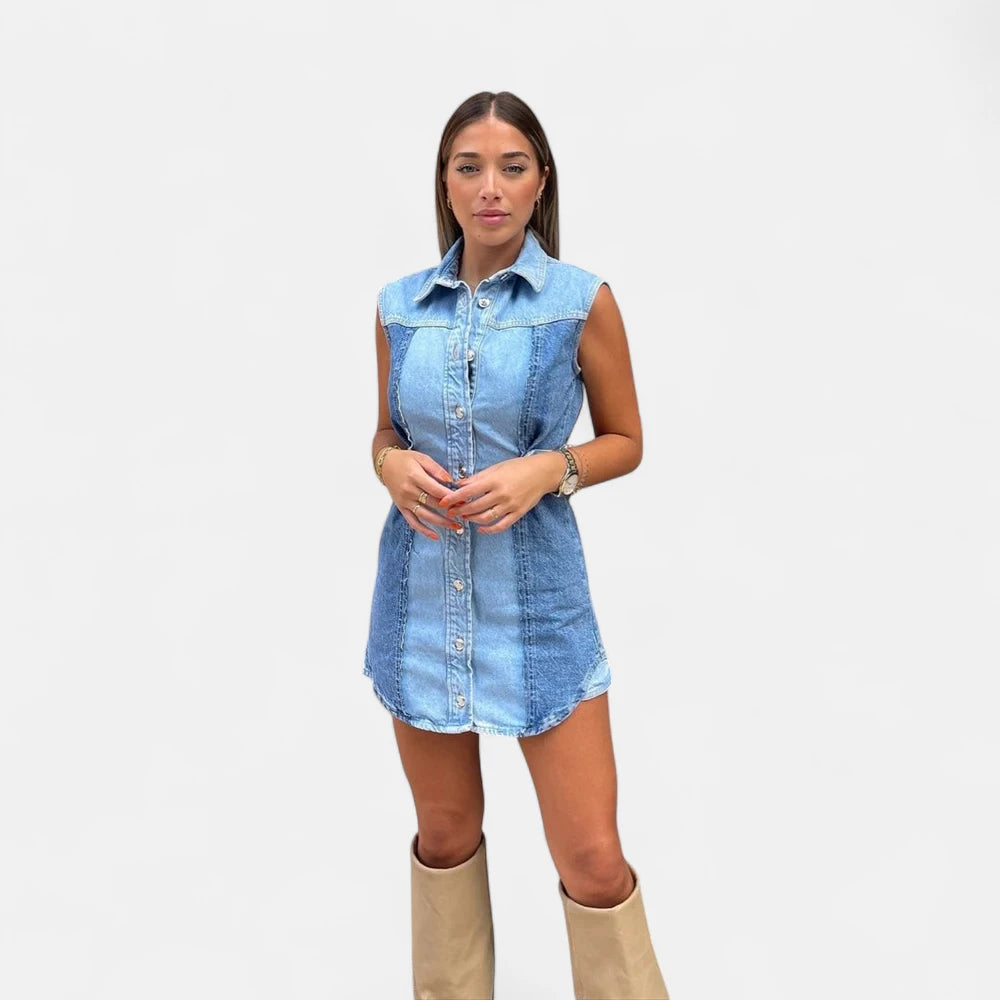 Légère et agréable à porter, cette robe mini sans manches combine praticité et élégance. Son col chemise classique et ses boutons métalliques apparents apportent une touche urbaine affirmée. Cintrée à la taille avec pattes ajustables boutonnées, elle s’adapte facilement à différentes morphologies. Idéale pour le printemps et l’été, elle vous accompagne du matin au soir avec confort et confiance.